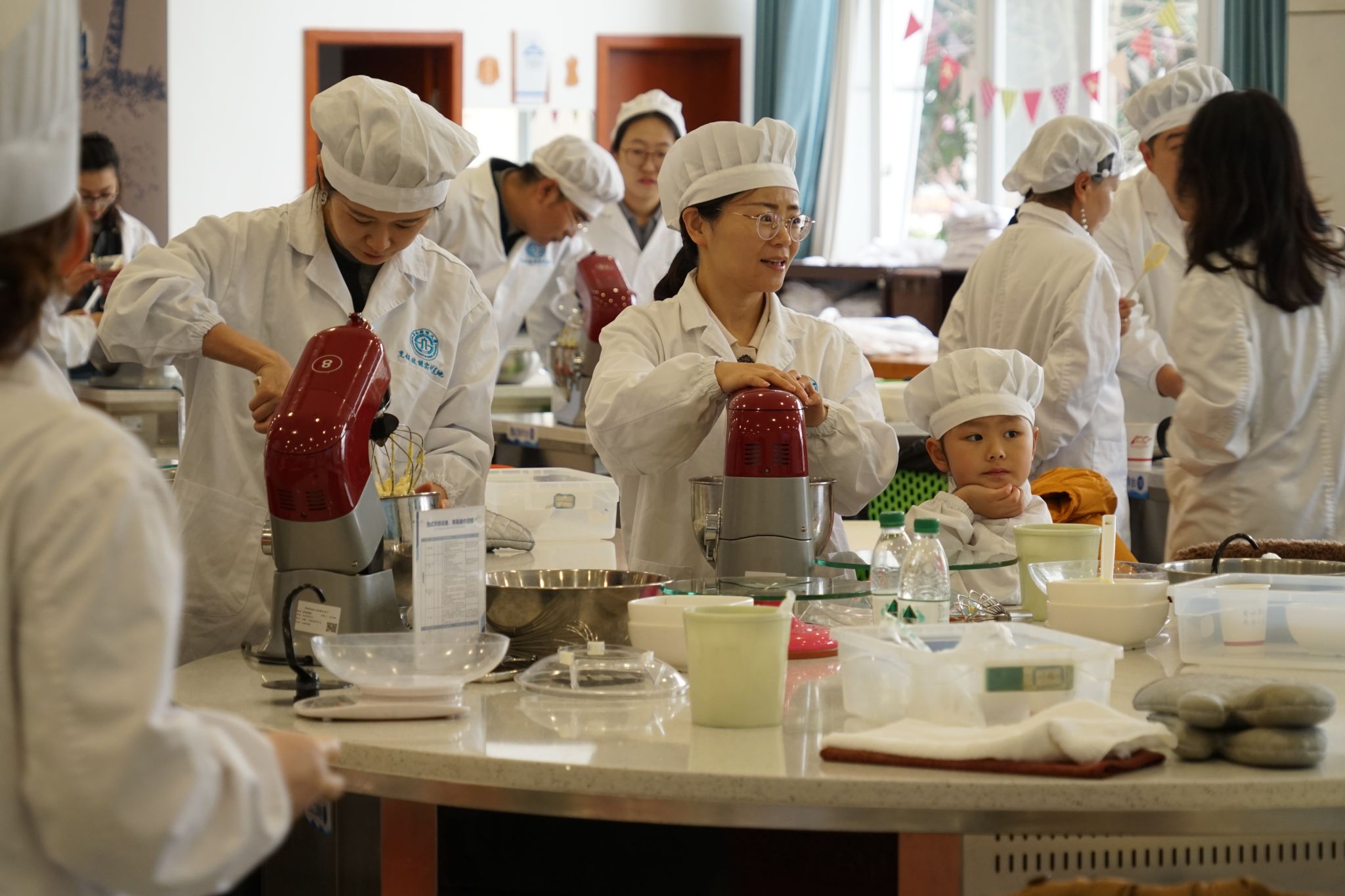 午后阳光洒落,参与活动的教职工携家属陆续到场,在温馨氛围中合影留念。简短开场后,烘焙环节正式开启。大家与同事、家人携手协作,共同完成面糊制作、曲奇塑形。孩子们好奇围观、协助装袋,天真模样为现场增添暖意。随着曲奇送入烤箱,甜香弥漫,大家品尝主题点心,分享工作生活趣事,气氛轻松融洽。
