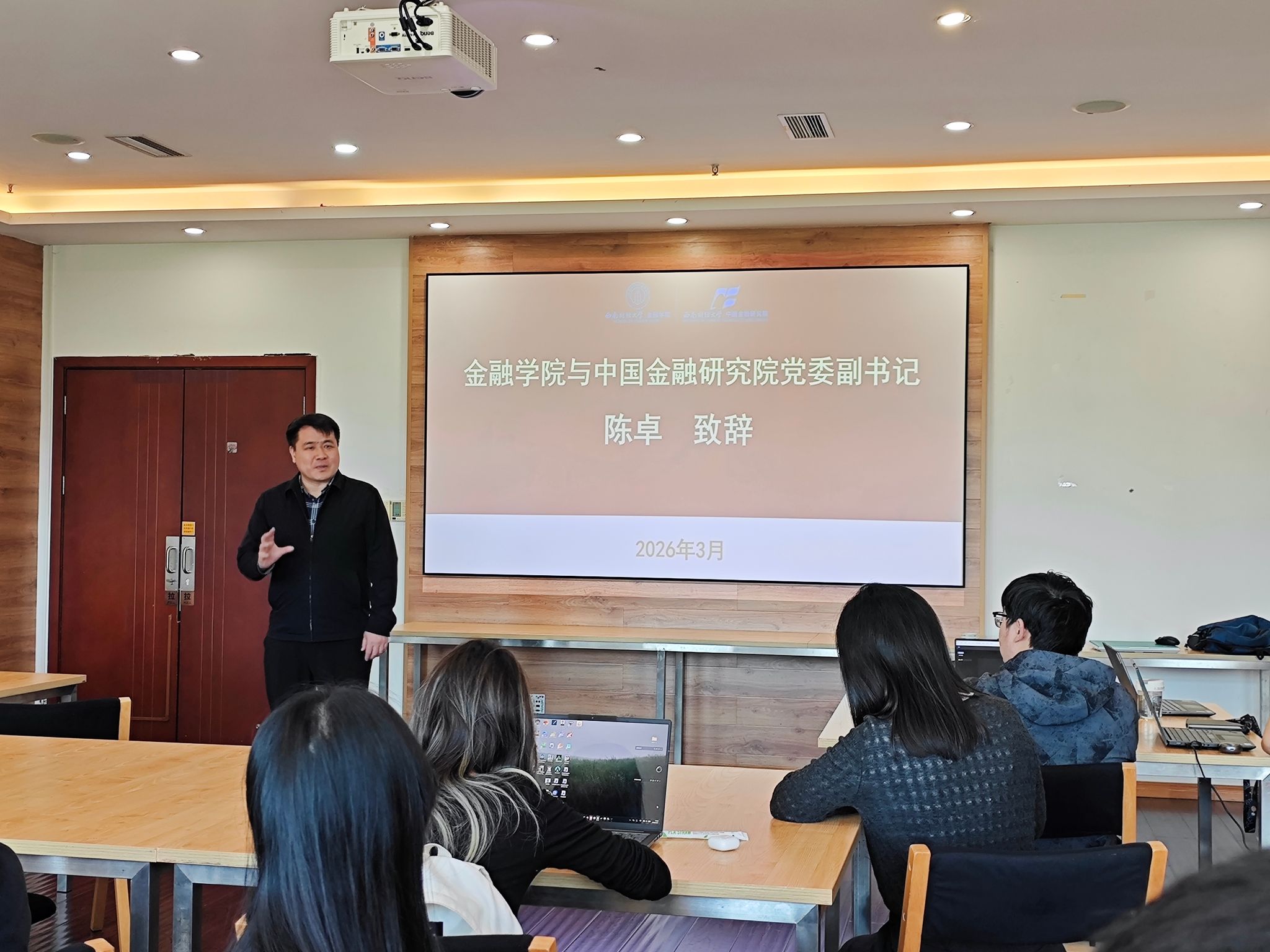 陈卓对同学们为宣传工作付出的努力给予充分肯定和衷心感谢,并对学院(研究院)全体宣传工作者提出两点期望:一是坚守价值引领初心,以正确价值观锚定创作方向,让创意创作与正向价值同频共振;二是擦亮学院(研究院)形象窗口,把学院(研究院)官方公众号打造为展现金融风采的核心载体,以优质内容引发情感共鸣,持续提升学院品牌影响力。他表示,学院(研究院)将全力支持同学们的创意创作,助力原创作品的孵化产出;针对同学们的能力进阶需求,后续将统筹优质资源开展系列培训,为学院(研究院)宣传工作提质增效保驾护航。